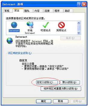 ?、谌绻麩o法下載或仍顯示紅X,則于瀏覽器——工具——internet選項(xiàng)——安全——自定義級別,如下圖: